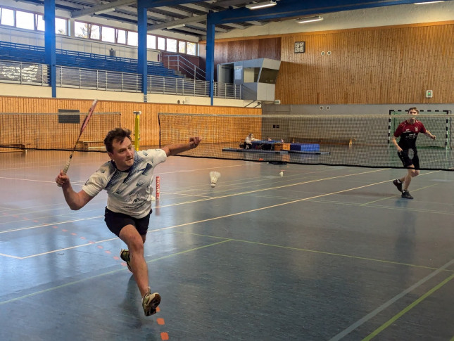 Im Doppel harmonierten Kiran und Stargast Jonathan wundervoll und nahmen einen sauber gespielten Zweisatz-Sieg (21-14, 21-16) mit nach Hause. Cindy und Caro unterlagen im Damendoppel leider ihren eingespielten Gegnerinnen (12-21, 16-21) und mussten das Spiel an die Euskirchener abgeben, dafür konnten Flo und Lukas im ersten Herrendoppel ebenfalls in zwei Sätzen (21-14, 21-17) den zweiten wichtigen Punkt sichern.