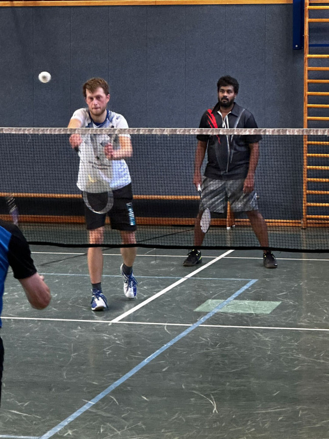 Zeitgleich wurde das erste Doppel in einer noch unbekannten Konstellation bestritten. Vijai und Marvin hatten am Anfang der Partie leider noch Schwierigkeiten und machten einige Fehler. Zum Ende hin wurden sie aber immer stärker. Es nützte nichts. Insgesamt verloren sie aber in 2 Sätzen. Das bald der erste Sieg folgen soll, darauf gaben sich die beiden Friesdorfer nach dem Spiel die Hand drauf. Dazu O-TON: