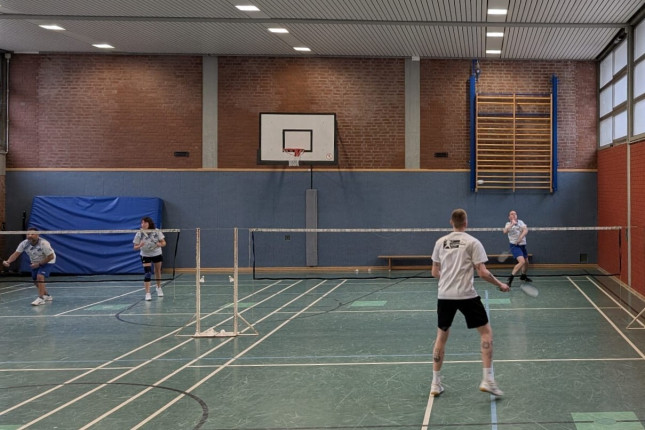Kerstin und Barbara konnten derweil schon im Doppel starten. Nach längerer Zeit wieder gemeinsam auf dem Platz hat das eingespielte Doppel keinerleit Startschwierigkeiten - im Gegensatz zu den Gegnern, die wenig zusammen eingespielt, kaum zusammenfinden. Beide Sätze gehen an Friesdorf (21:08; 21:06).