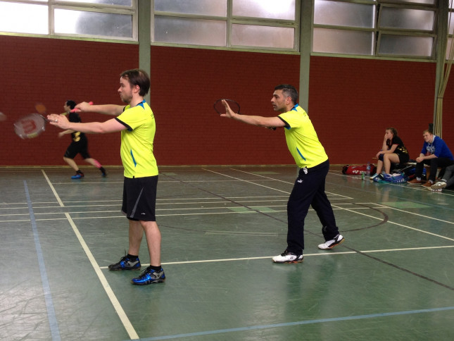 Pünktlich standen also die sympathischen CfB´ler in der Halle. Nachdem Arne ein paar Probleme beim Verlesen der Spielpaarungen hatte - die Siebte des CfB ist äußerst international - ging es direkt los. Dieses Mal mit dem 2. HD und dem DD. Marie und Christina gewannen ohne Probleme. Arne und Shakil machten es etwas spannender. Nach einem einigermaßen deutlichen ersten Satz, wurde im zweiten Satz die maximale Punktzahl genutzt. Obwohl man in der Verlängerung immer einen Punkt vorne lag, wollte der erlösende Zweite einfach nicht klappen. Schluss war dann regelkonform bei 30 - 29 für die Friesdorfer. Dennis und Jens im 1. HD kamen leider nie ganz in Spiel und verloren in zwei Sätzen.
