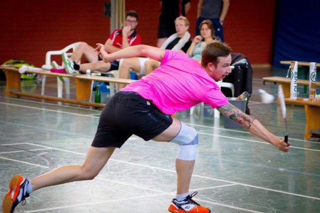 Chris im HE2 zeigte wieder seine läuferischen Qualitäten und rang den Gegner 21:18 und 21:19 nieder. Benni zeigte im HE3 seine überaus coole Spielweise und ließ sich durch nichts aus der Ruhe bringen. War der erste Satz mit 21:19 noch umkämpft, holte Benni Satz 2 sicher 21:11.