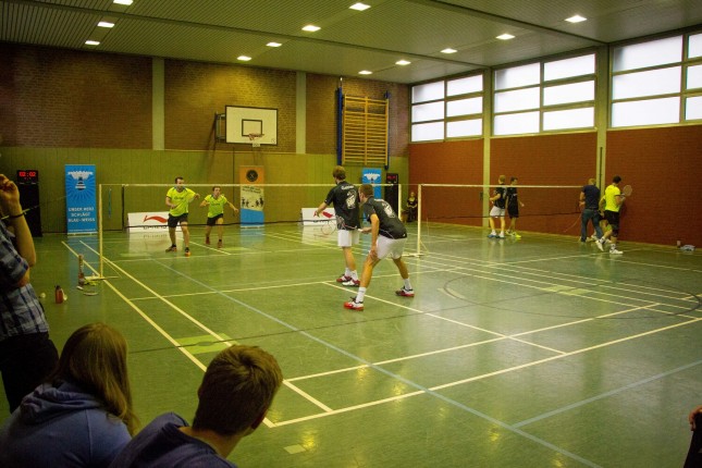 Gestartet wurde in erwürdiger Tradition mit den beiden Herrendoppeln. Hier sah es nach dem ersten Satz jeweils nicht gut aus für die Friesdorfer. Im zweiten Satz konnten beide Doppel ihre anfängliche Nervosität ablegen und gewannen diesen jeweils deutlich. Christian und Florian konnten im dritten Satz ihre Konzentration hoch halten und gewannen diesen mit Hilfe lauter Unterstützung durch die Fans zu 13. Christoph und Oli wollten am Ende des dritten Satzes zu viel, so dass sie sich zu 18 geschlagen geben mussten. Das Damendoppel ging leider kampflos an Brühl. Somit lautete der Zwischenstand nach den Doppeln 2:1 für Brühl.