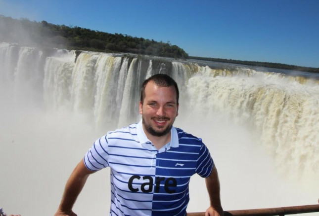 (F.O) Kilometer um Kilometer wird das Trikot von unseren Vereinsmitgliedern um die Welt getragen. Heute sehen wir Florian auf der argentinischen Seite der Iguazu-Fälle vor der sogenannten Garganta del Diabolo.