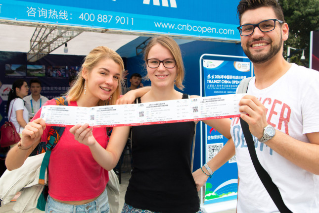 Im Vorfeld unterschätzt hatten wir allerdings das Aufsehen, welches wir hier in Fuzhou bei den China Open erregen würden. Am Vortag in der Stadt konnte man bereits feststellen, dass doch ein größerer Teil der Bevölkerung den Anblick von hellhäutigen, blonden Europäern nicht gewohnt war. Doch hier auf dem Vorplatz des Stadions fingen viele an, mehr oder weniger unauffällig Fotos von uns zu schießen. Eine ungewöhnliche Erfahrung.