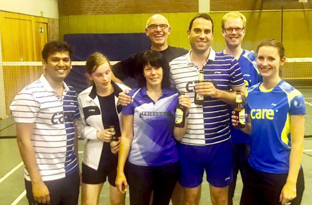 (J.H) Wenn der 1. FC Köln Borussia Mönchengladbach empfängt, dann spricht alles für ein spannendes Heimderby. Ähnliches ist der Fall, wenn die DJK Blau-Weiß Friesdorf gegen den Godesberger TV spielt. Für die Friesdorfer verlief alles glatt. Sämtliche Spiele mit Damenbeteiligung gingen an die Heimmannschaft dank des Einsatzes von Kerstin, Barbara und Mareike. Ein Herrendoppel und zwei Herreneinzel mussten an den Gegner abgegeben werden, dafür gewann Benedikt sein Einzel und Benedikt und Jörg holten einen weiteren Punkt in ihrem Doppel ebenso wie Kerstin und Jörg im Mixed. Im Unterschied zum Fußball verlief dieses Derby aber völlig entspannt trotz Tempo und Kampf. Am Ende freuten sich die Friesdorfer über das Vorrücken an die Tabellenspitze. Und im nächsten Jahr werden wir hoffentlich auch wieder das Derby FC gegen Gladbach erleben.