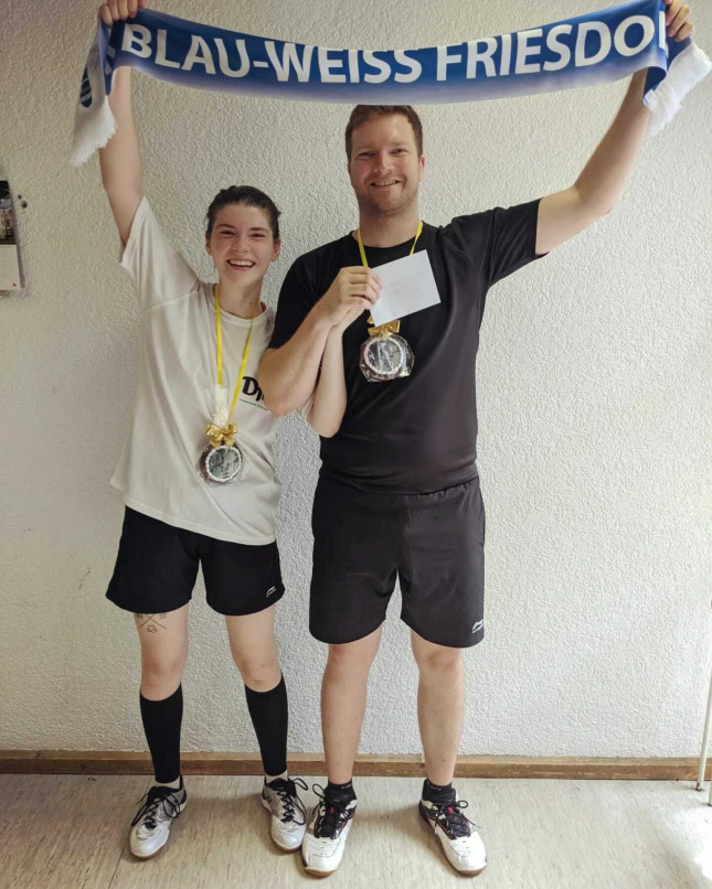 Unglaublich erfolgreich spielten sich die beiden durch den Turniertag. Mit 3 Siegen konnten Sie Ihre Gruppe gewinnen. Ab dem Viertelfinale gingen dann im wahrsten Sinne des Wortes die heißen Schlachten los. 2 Dreisatzspiele bis zum sensationellen Finaleinzug, wo ebenfalls 3 Sätze gespielt wurden. Sehr knapp und etwas unglücklich, aber trotzdem hochzufrieden, konnten sich Corinna und Jens den zweiten Platz im Mixed sichern. Ein toller Erfolg!