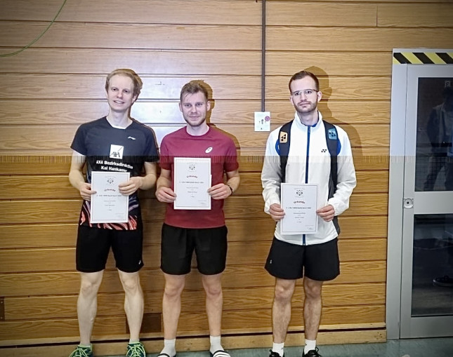 Max und Philipp mussten im A-Feld im üblichen Ranglistensystem ran. Hierbei verlor Max leider sein zweites Spiel, sodass nur noch maximal Platz 5 drin war. Diesen holte er sich dann aber souverän mit 3 weiteren Siegen. Philipp kam etwas weiter und musste sich erst im Halbfinale dem späteren Turniersieger geschlagen geben. Im Spiel um Platz 3 konnte er sich dann für Max Niederlage revanchieren und schaffte es damit noch aufs Treppchen. Somit steht am Ende ein gutes Ergebnis mit jeweils einem zweiten, dritten und fünften Platz im Herreneinzel, das dann im Anschluss noch bei McDonald's gefeiert wurde.