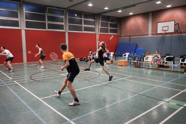 Der Spieltag begann mit den beiden Herrendoppeln. Im ersten Herren Doppel konnten die Friesdorfer Roman & Marvin nicht gegen das andere Herrendoppel aus Köln bestehen. Im ersten Satz verloren die Friesdorfer nur knapp mit 18 zu 21, wohingegen im zweiten Satz die Erfahrung und technische Stärke der Gegner zur Geltung kam.