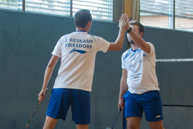 Nach einem noch sehr angespannten Start aber in der Folge keinesfalls knappen ersten Satz folgte ein schnell entschiedener zweiter Satz mit 21:4 nach Friesdorf, endlich der langehrsehnte Erfolg für Paul im dritten Herren-Einzel!
