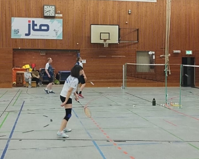 Während Raphael und Lars im ersten Herrendoppel mit 21:17 und 21:10 verloren, lief das zweite Doppel mit Marius und Aasim etwas besser. Eine 3-Punkte-Führung im zweiten Satz konnte jedoch nicht gehalten werden und so lag Friesdorf schon 0:3 zurück nach den Auftaktspielen.